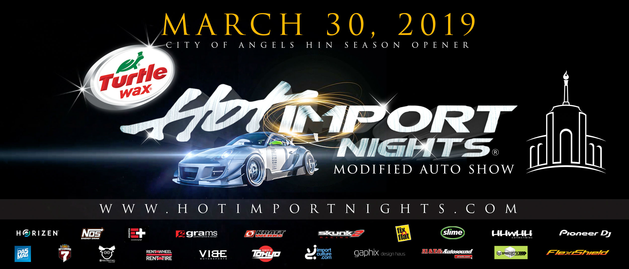 Turtle Wax Hot Import Nights 22nd Annual SoCal Season Opener makes way to a new home in Los Angeles. Featuring hundreds of modified show vehicles, plus Live Entertainment on the Pioneer DJ Main Stage, Vendors Midway, Reveals, Miss HIN Los Angeles Model Competition, Fashion Walk, Food & Beverages, plus Festival Attractions all in one epic venue!