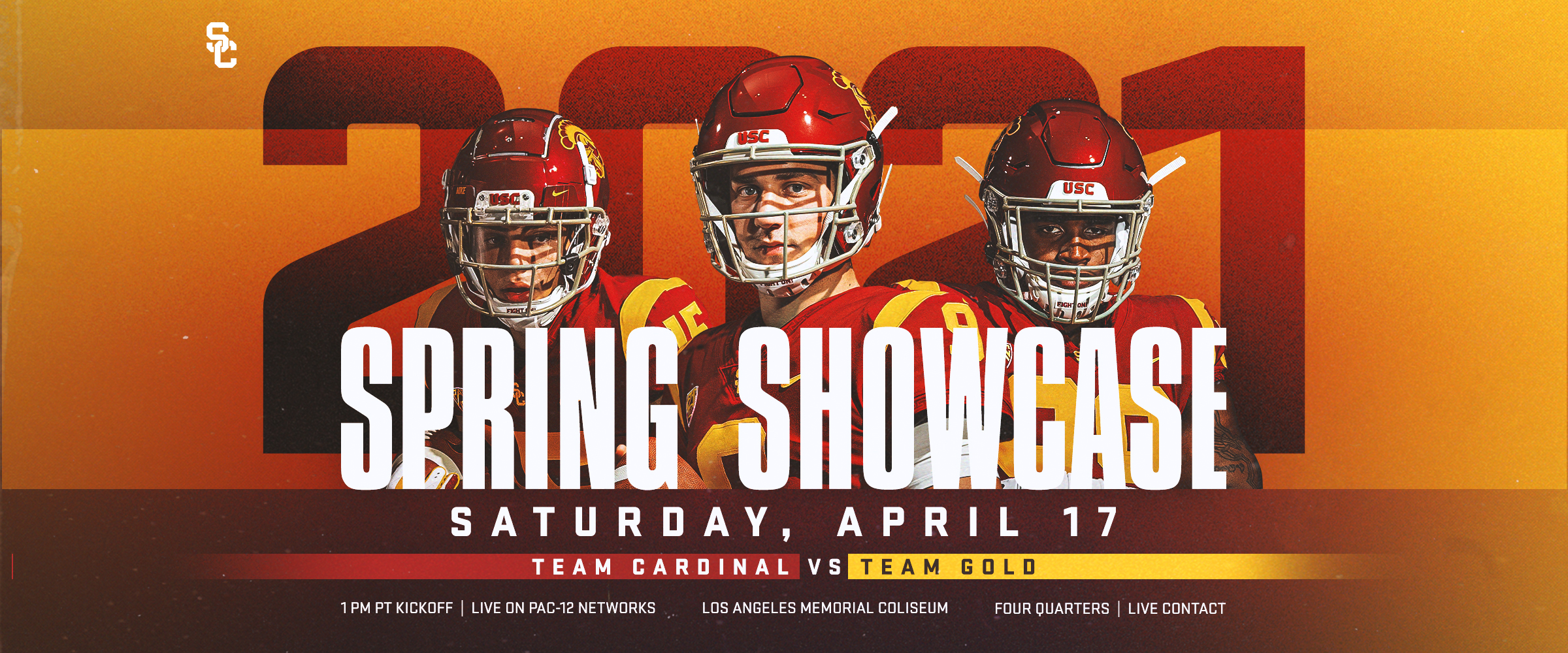 The Spring Showcase will kick off at 1 p.m. PT and will be televised live on Pac-12 Networks. It will feature four 12-minute quarters of live contact, with the Trojan roster split into Cardinal and Gold squads.