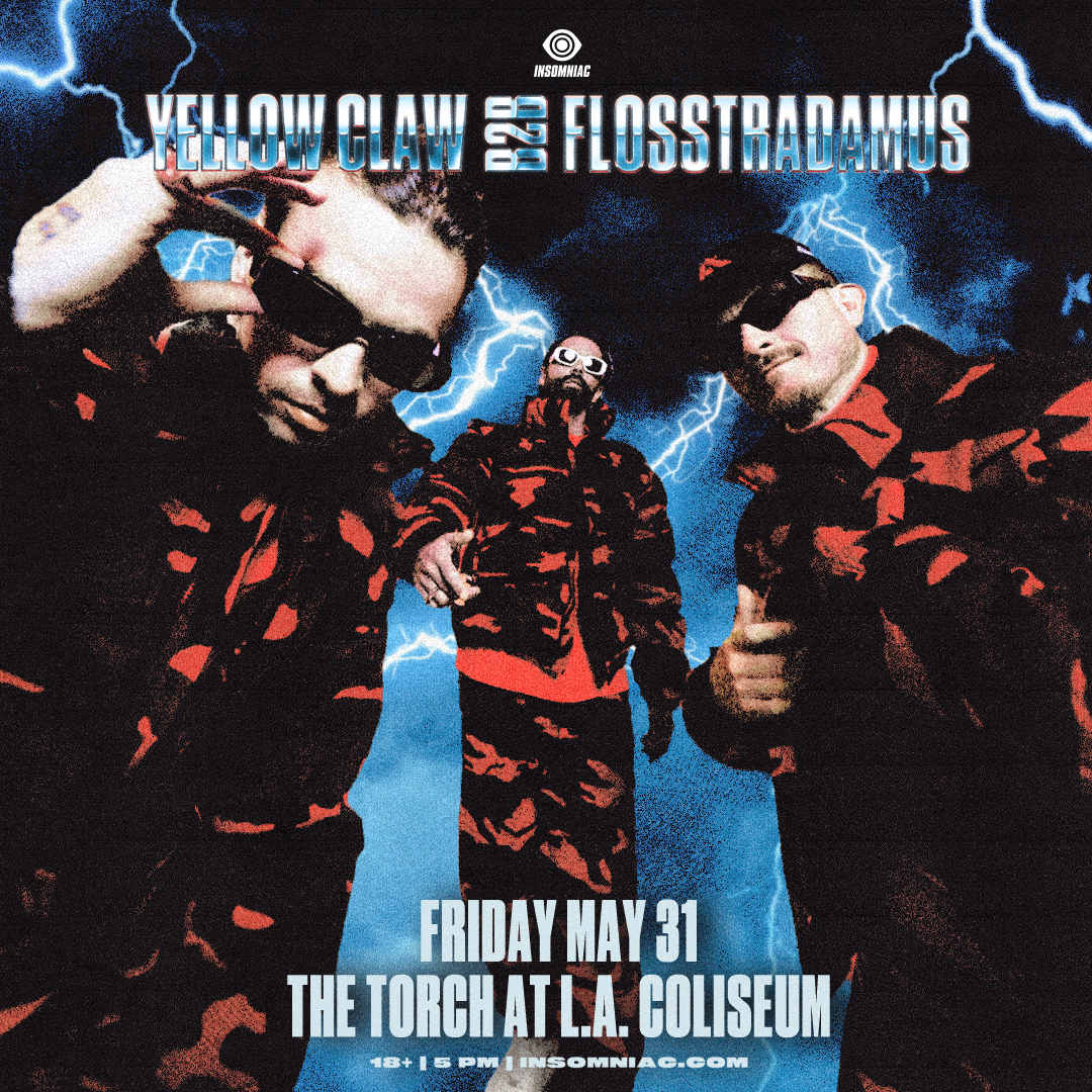 Yellow Claw and Flosstradamus are stopping at The Torch at the LA Coliseum on Friday, May 31. The two titans of the trap music scene are joining forces for a first-ever collaborative tour that promises to be a monumental event in the realm of electronic dance music. Fans can expect a full-on, back-to-back performance showcasing their biggest tracks and remixes besides their accurate curation of the most memorable songs of that era.